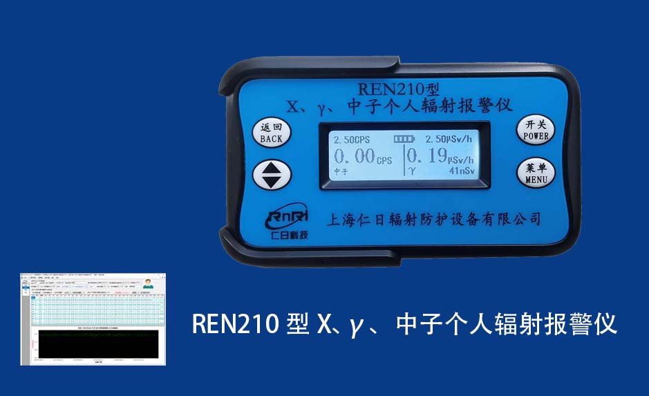 REN210型X、γ、中子個(gè)人輻射報(bào)警儀內(nèi)置SiPM和鋰玻璃晶體組成中子探測(cè)器儀器,采用反照率方式探測(cè)中子射線,同時(shí)也能探測(cè)X、γ射線。因此它可同事監(jiān)檢測(cè)X、γ、中子三種射線。能顯示工作場(chǎng)所的劑量當(dāng)量率和累積劑量,更換電池時(shí),日期及累積數(shù)據(jù)能永久保存。可選配RenRiPersonal個(gè)人劑量管理軟件,該軟件可存儲(chǔ)多個(gè)人的歷史數(shù)據(jù),能記錄日累積、月累積、年累積、輻照時(shí)長(zhǎng)、計(jì)算平均劑量率、扣除或不扣除本底輻射,且以文字和圖譜的方式展現(xiàn)數(shù)據(jù)。廣泛應(yīng)用于環(huán)保、化工、水泥、煤礦、土木工程、石油、醫(yī)院、疾控、進(jìn)出口商檢、核電、加速器、機(jī)場(chǎng)、中子源庫和其他安檢、邊境控制海關(guān)檢測(cè)等領(lǐng)域中的工作人員進(jìn)行個(gè)人安全防護(hù)監(jiān)測(cè)及放射性提示。